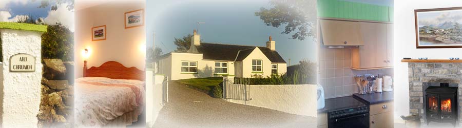 Ard Chruaidh comes from the old gealic language, meaning bold hill. From this hill you have magnificent views over Loch Indaal. Situated in the centre of the island between Bowmore and Bridgend, Ard Chruaidh is a traditional cottage with a big garden. From the lounge and diningroom you have stunning views over Loch Indaal and from the kitchen you have beautifull views to the hills. Sit down in the lounge and relax with Freesat Tv, free Wifi Internet, MP 3 Dock and CD/DVD player. There are several CD’s and DVD”s in the cottage. Sleep well in one of the four bedrooms, enjoy cooking in the kitchen and eat in the diningroom. Walk with low tide the mud-flat / shoal, enjoy the birds and smell the sea. The cottage is just 1,5 miles from Bowmore, with his shopping street, pubs and restaurants. In this capital you also find the Bowmore distillery, Round Church, the Royal Bank of Scotland, a big supermarket and the Post Office. Because Ard Chruaich is located in the centre of Islay it takes no time to discover all the edges of the island. Go to see the birds at the RSPB near Loch Gruinart or the Oa, enjoy fishing in the ocean or the lakes and rivers, play a round of golf on the beautifull Machrie Golf Links or simply walk along the beaches and over the hills and fields. If you like history, go to the Museum of Islay Life, Finlaggan, Kildalton Cross or search for standing and carved stones. When you are in for a whisky tour, then Islay is heaven. Eight distillery’s with icons as Laphroaigh, Ardbeg, Bowmore are waiting for you. The last two years we have renovated the house totally, trying to keep the old cottage atmosphere. With his central heating and a wood stove in the lounge, a new bathroom with bath and separate shower, new kitchen and one ensuite bedroom, the cottage has everything you need for a successful holiday. |